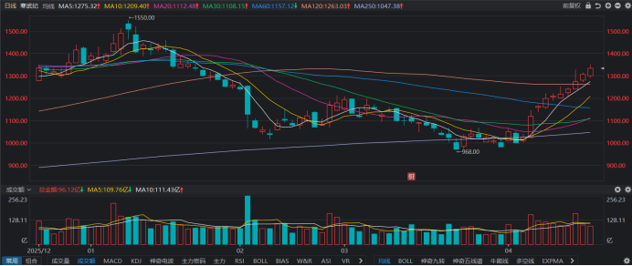 财联社4月17日讯(裁剪 梓隆),本日(4月17日),芯片龙头股寒武纪再度拉涨,去世收盘,其已累计高潮10个往改日,技术涨幅近33.5%,同期股价创1月23日以来近3个月新高。当今,寒武纪股价收于1334元,位居全商场第三位,并逐渐接近位列第二位的贵州茅台。